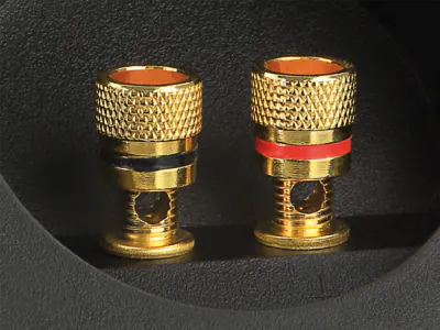 Speaker terminal for speaker or subwoofer enclosure construction.