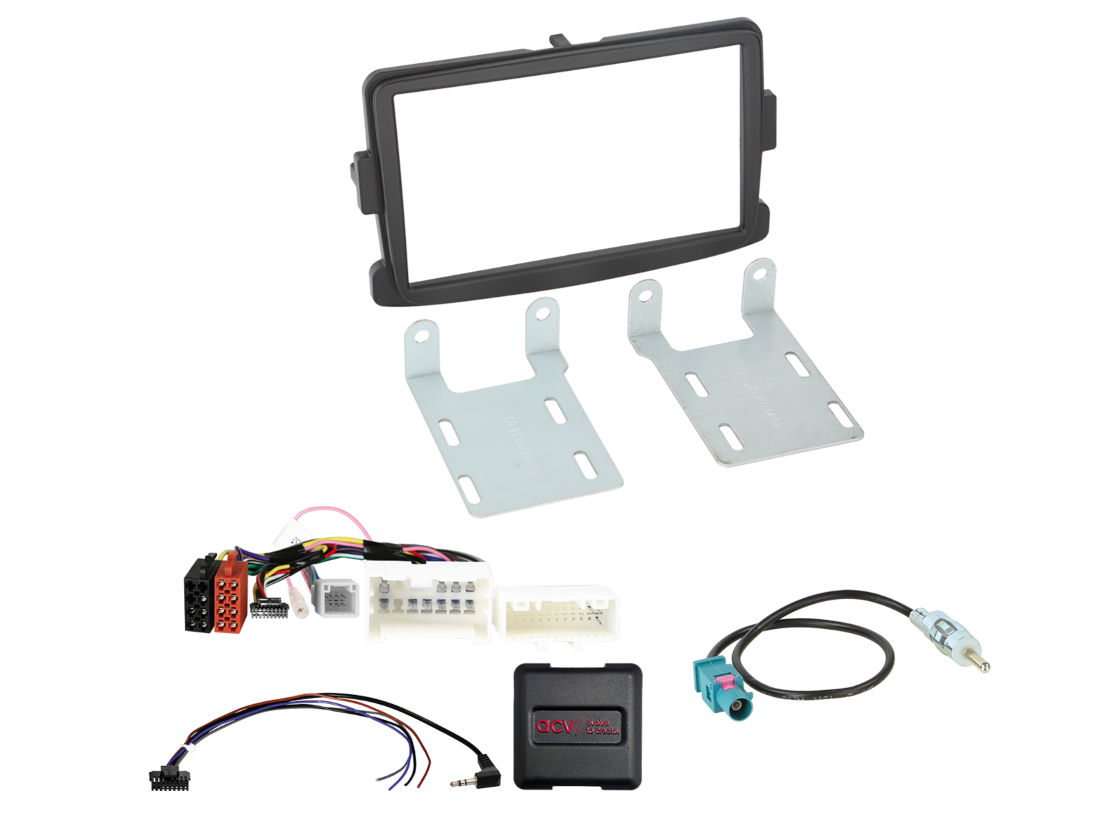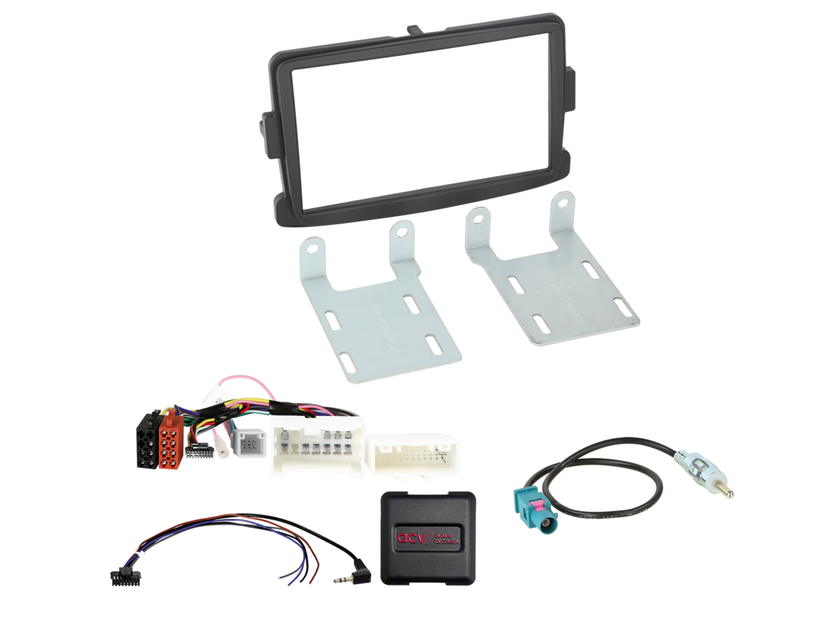 Facia plate 2-DIN and HU connector kit SWC Dacia / Fiat / Nissan / Opel / Renault