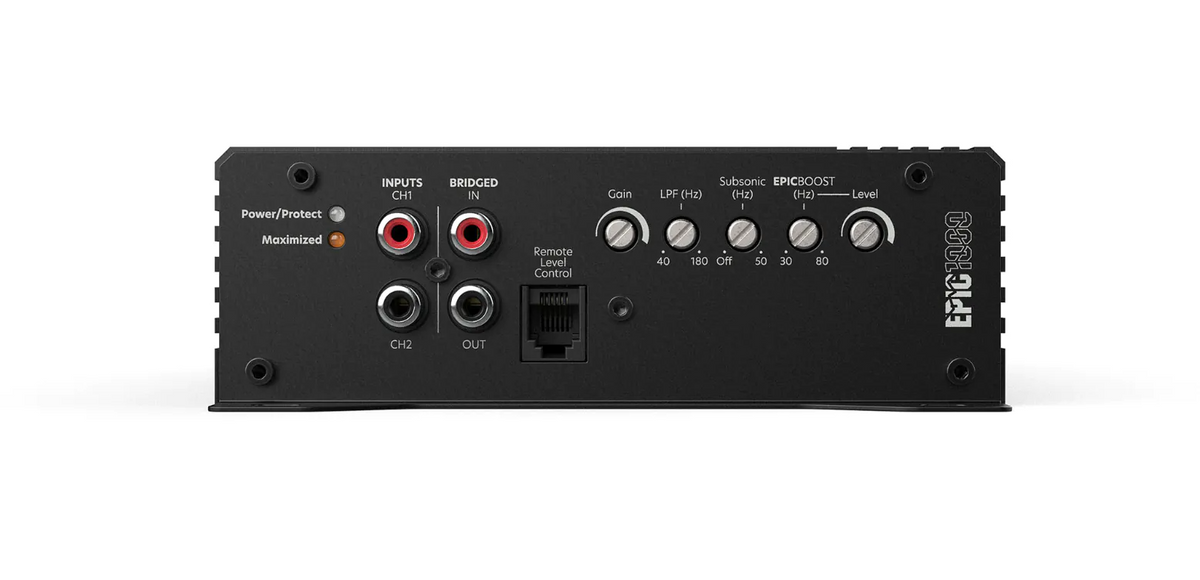 The AudioControl EPIC Series Amplifier delivers powerful, heart-pounding bass in a compact, thermally efficient design. Perfectly paired with The Epicenter Bass Restoration Processor (sold separately), it enhances your bass experience to new levels. This amplifier offers exceptional sound quality and is the only AudioControl amplifier to include a bass knob for easy control.