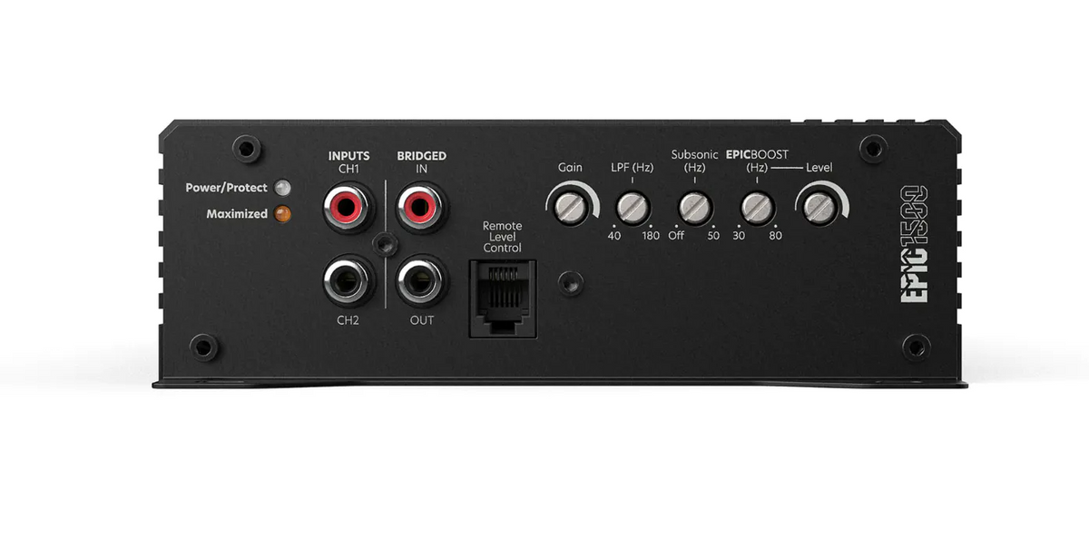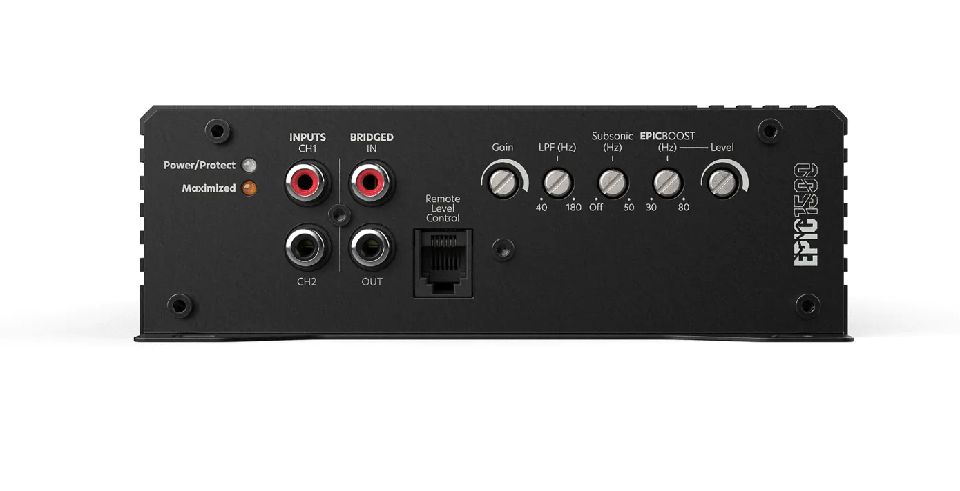The AudioControl EPIC Series Amplifier delivers powerful, heart-pounding bass in a compact, thermally efficient design. Perfectly paired with The Epicenter Bass Restoration Processor (sold separately), it enhances your bass experience to new levels. This amplifier offers exceptional sound quality and is the only AudioControl amplifier to include a bass knob for easy control.