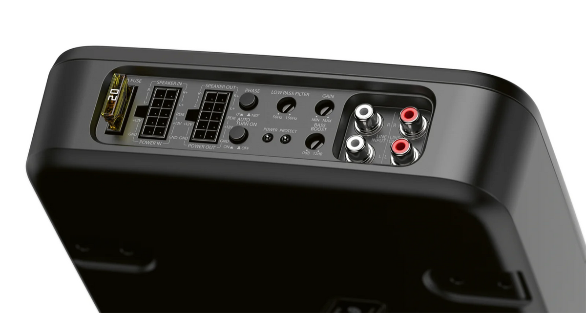 Level control (GAIN) adjusts the HK FEEL 700’s volume to the other speakers in your system, while BASS BOOST (0-12dB) control lets you minimize peaks or dips in bass frequencies in your car’s acoustic environment.
