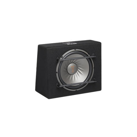 The Stage 1200S subwoofer enclosure pounds out resounding bass from a compact enclosure that fits in just about any vehicle. High efficiency combines with impressive power-handling for rich and satisfying performance. The 12" woofer cone and large voice coil work together for remarkable realism, note-perfect accuracy, and sustained bass response. And this enclosure's striking good looks are matched by its ease of installation.