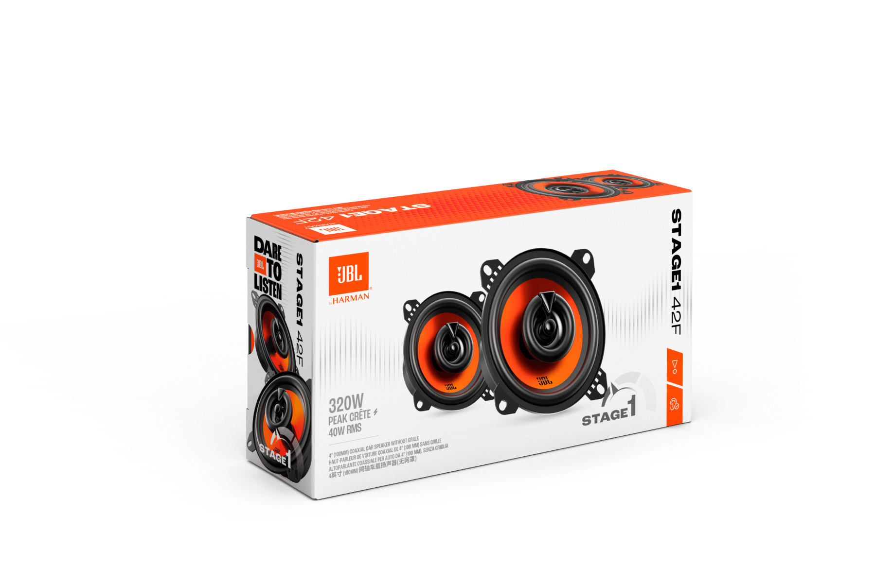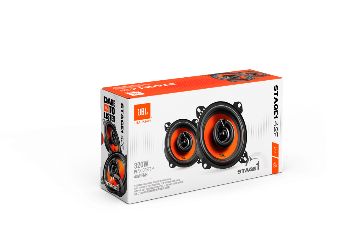 Easily upgrade your car system with the compact JBL Stage1 42F car speakers. These 4-inch coaxial speakers deliver impressive sound with 320 Watts peak power and 40 Watts RMS continuous power, perfect for smaller spaces or replacing stock car speakers.