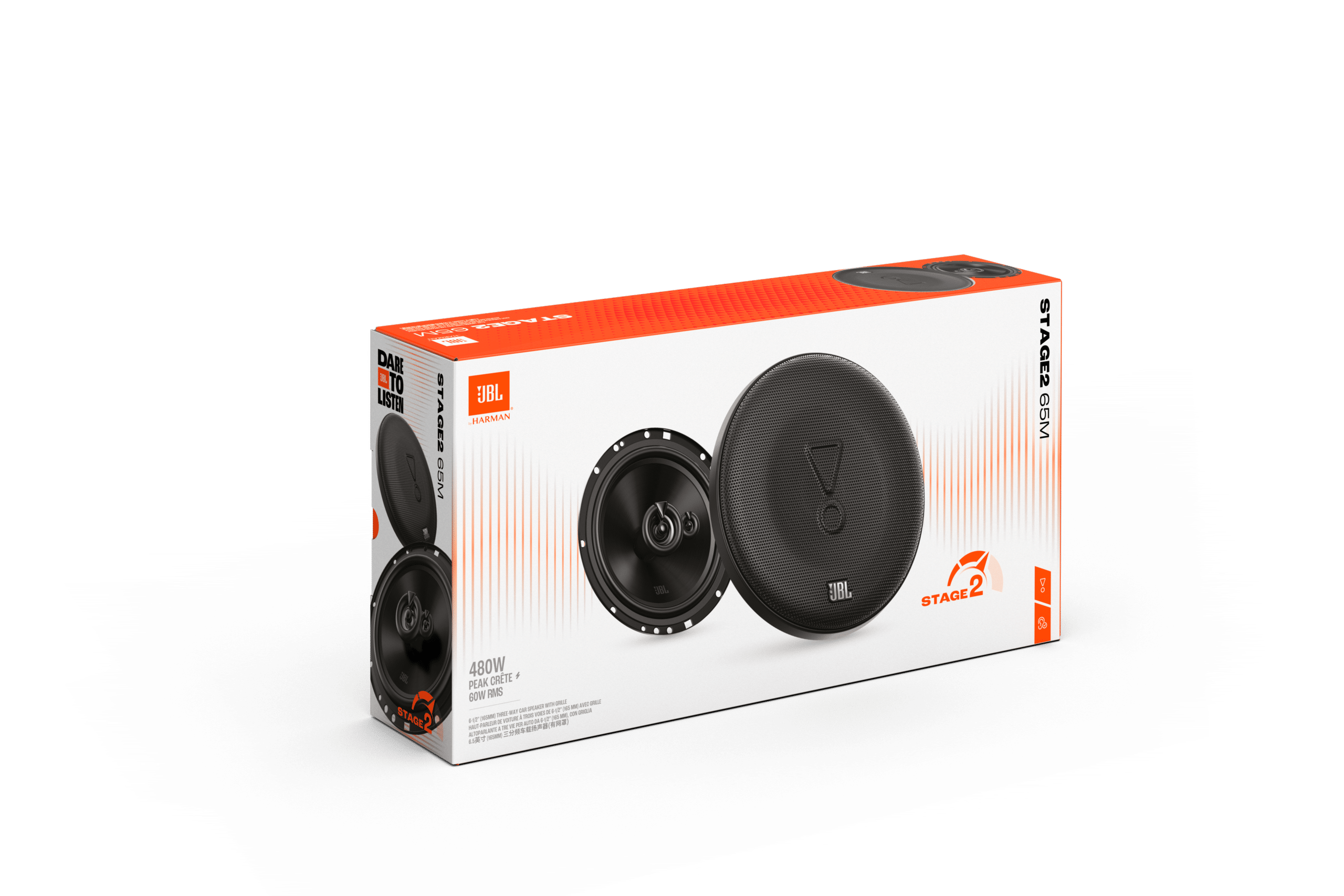 Upgrade your road trip with the high-performance JBL Stage2 65M car speakers. These powerful 6.5-inch coaxial speakers deliver impressive sound with 480 Watts Peak and 60 Watts RMS continuous power, for clear and powerful audio performance on the road.