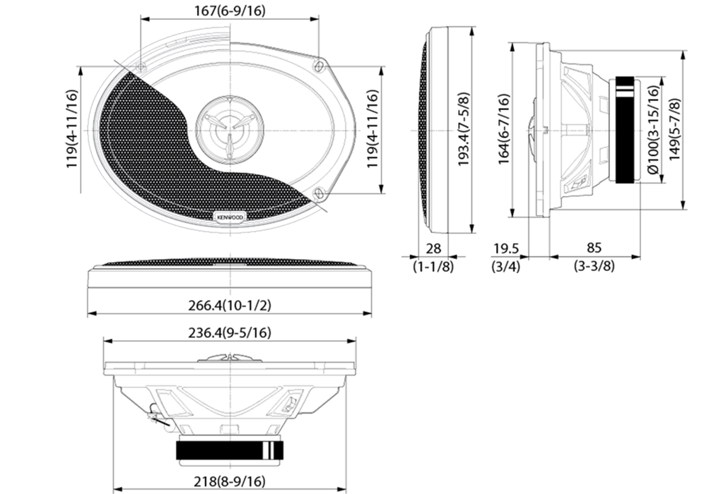 - Speaker Size 153 x 229mm