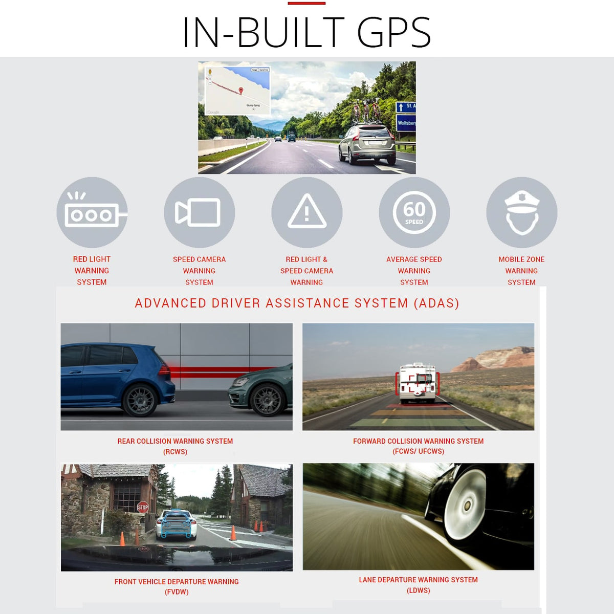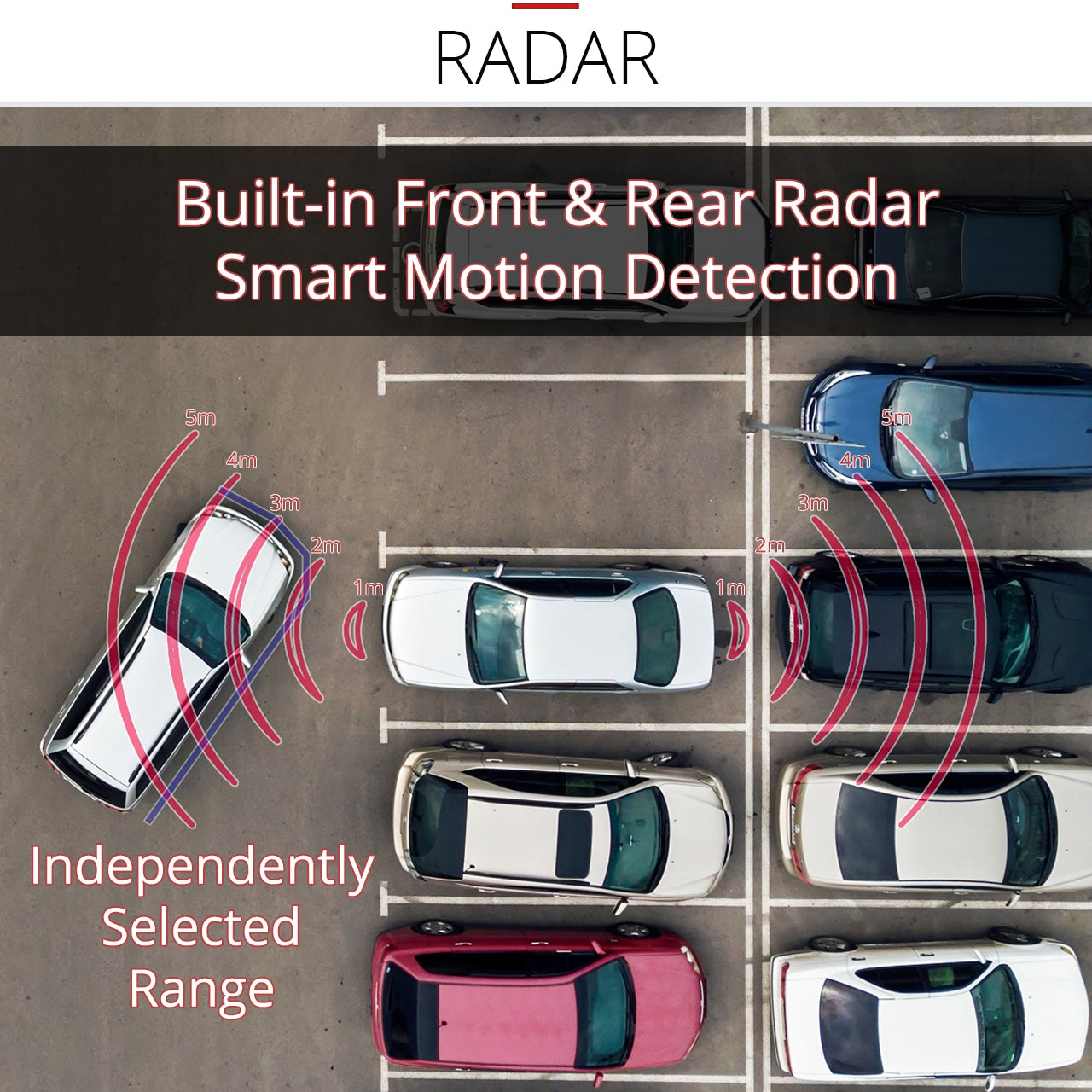 Packed full of advanced features such as built-in-GPS, Speed Camera Database, Advanced Parking Mode, Timelapse mode and Energy Saving Mode to keep you protected longer. Plus built-in front and rear Radar for Advanced motion detection whilst parked.